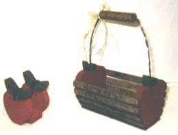 The traditional apple basket features a hand twisted wire handle with copper strand. Length 8.5", width 5", and height 11" $13.95 |